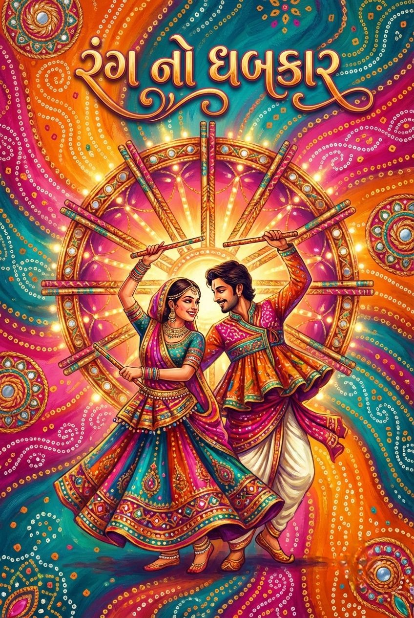 Urban Gujarati Folk Pop, Romantic Danceable, 120 BPM, heavy Dhol and rhythmic Claps, melodic Shehnai and Flute, groovy Synth-Bass, soulful and energetic male/female duet vocals, festive Garba-Fusion vibe, high-fidelity studio production