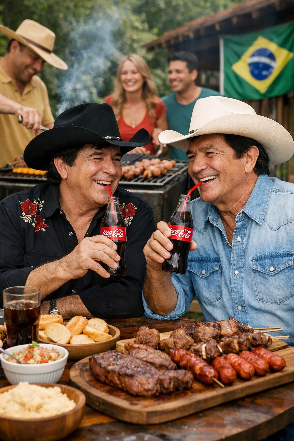 Upbeat modern sertanejo with male vocals; bright acoustic guitar and viola leading, bouncy accordion and cheeky trumpet fills, Verses stay light and story-driven over a swinging groove; chorus explodes with stacked gang vocals and claps, electric guitar answering the vocal lines, Drums drive a danceable backbeat, key change and big ad-libs on the final chorus for maximum party emotion, sertanejo