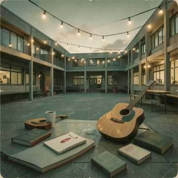 country, 90s-inspired sertanejo universitário with male vocals, nylon-string guitars and soft country fiddle doubled by airy flute lines, Mid-tempo groove with brushed snares and warm upright bass; verses stay intimate and conversational, chorus lifts with stacked thirds and a singalong hook, Subtle classical touches in the flute and a short acoustic solo before the final chorus for a nostalgic, campus-party feel, classical, sertanejo