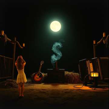 Musica gaúcha animada, vanera bem dançante do interior com gata, violão, baixo, bumbo leguero, e com guitarra elétrica, voz masculina e feminina, dramatic