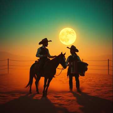 Um estilo sertanejo raiz com violão, teclado, bateria, gaita, voz masculina