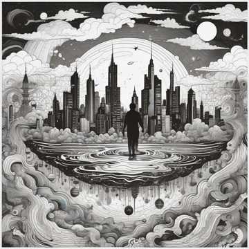 Dark retrowave, guitar, violin, taiko drum, synth, spoken dialogue, confused male vocals, acapella