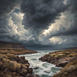 Symphonic, male vocal, bass percussion, harp, dark, fiddle, tin whistle, sea shanty