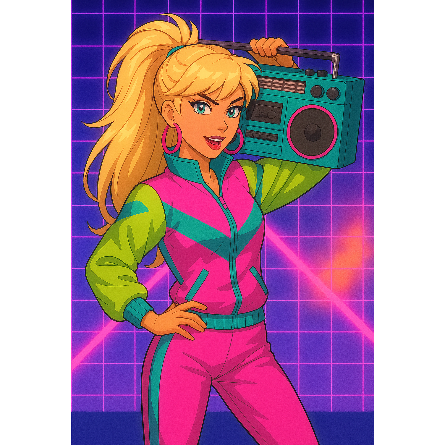 1983 - Fun and quirky 1980s synth-pop Bright, energetic female vocals with a playful tone, Bouncy drum machines, retro synths, new wave guitar licks, and catchy melodies, Upbeat and danceable, with a rebellious, carefree attitude, with a touch of 80s punk-pop flair