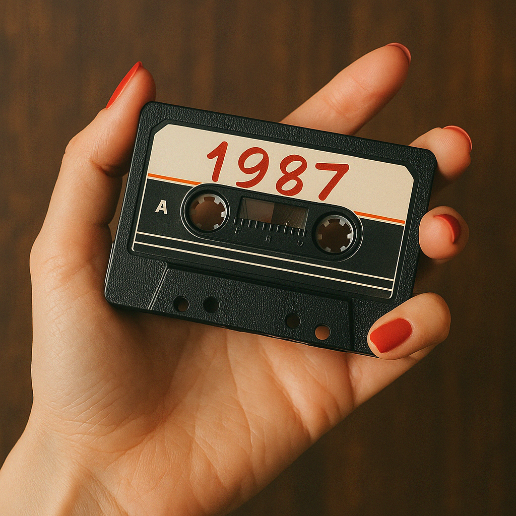1987, synthpop, female vocal, sensual and nostalgic, bright analog synths, electronic drums, dreamy retro textures, French lyrics, poetic and emotional time-travel story, cinematic intro and outro, sounds like 1987, Eurythmics, #80sFrenzy