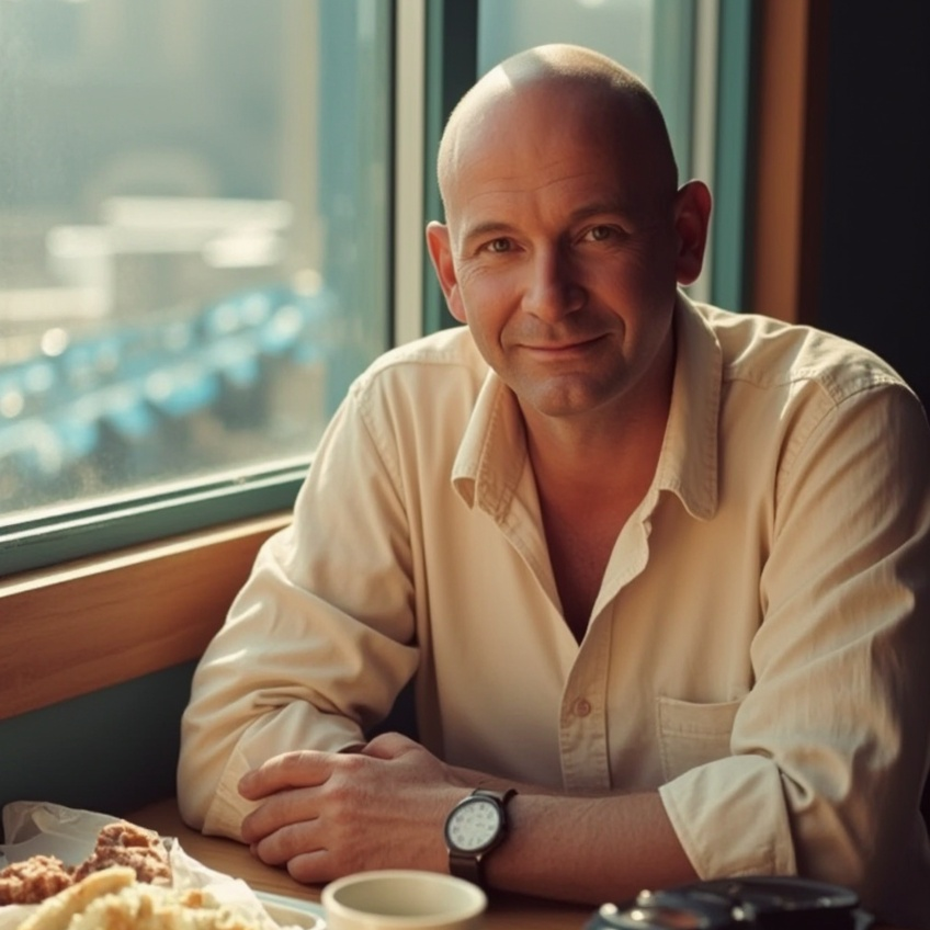 Bridge shifts to C minor for a subtle bittersweet touch, returns to Eb for the outro, Drums use strong gated reverb on snare and toms, with long, dramatic tails that bloom and cut off sharply, Vocal is warm, slightly husky, close-mic'd, with understated harmonies, Mood is nostalgic, gentle, and quietly hopefulโlike a lunch break where every word matters, End with a soft fade-out, evoking lingering emotion, โNo heavy rock guitars, โno fast tempo, โno shouty vocals, โno dance beats, โno busy percussion, โno big dramatic build-ups, โno obvious 2000s elements, โno autotune, โno harsh synths, โno crowd noise, โavoid modern pop clichรฉs, โEDM drops, โand excessive vocal runs