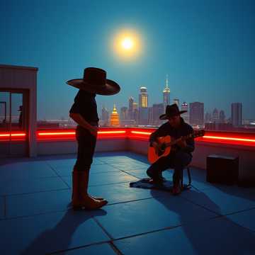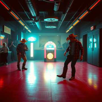 Playful Hyper Melbourne Dance, dance, Sunburnt country two-step with a four-on-the-floor club pulse, bright Telecaster twang over sidechain synth bass, fiddle hooks answering a tight male vocal, Verses stay lean and story-driven; chorus widens with stacked gang shouts and big clap builds leading into a dancing, festival-ready drop, country