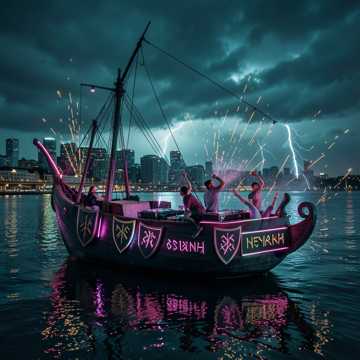 dance, High-energy Melbourne bounce with Viking folk twist; male vocals, Bright plucky lead over rubbery bass, whistle-like synth doubling a Nordic-style fiddle hook, Verses ride a choppy, syncopated groove; chorus erupts with crowd chants and stacked gang vocals, Big tom fills, claps, and a shout-along post-chorus perfect for festival stages