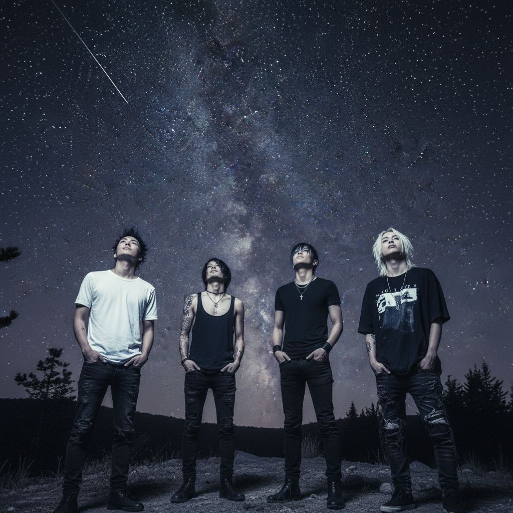 BPM 185, Respectful cover of the song “星天” by ELEMAYU — preserve the original melody faithfully throughout the entire song, Start with an intimate, minimal arrangement using only acoustic guitar (fingerpicking or soft strumming), with a warm and emotional tone inspired by the original, Keep the vocal soft, heartfelt, and melodic, closely following the original melody, After the first chorus, dramatically explode into an intense digital hardcore punk section: