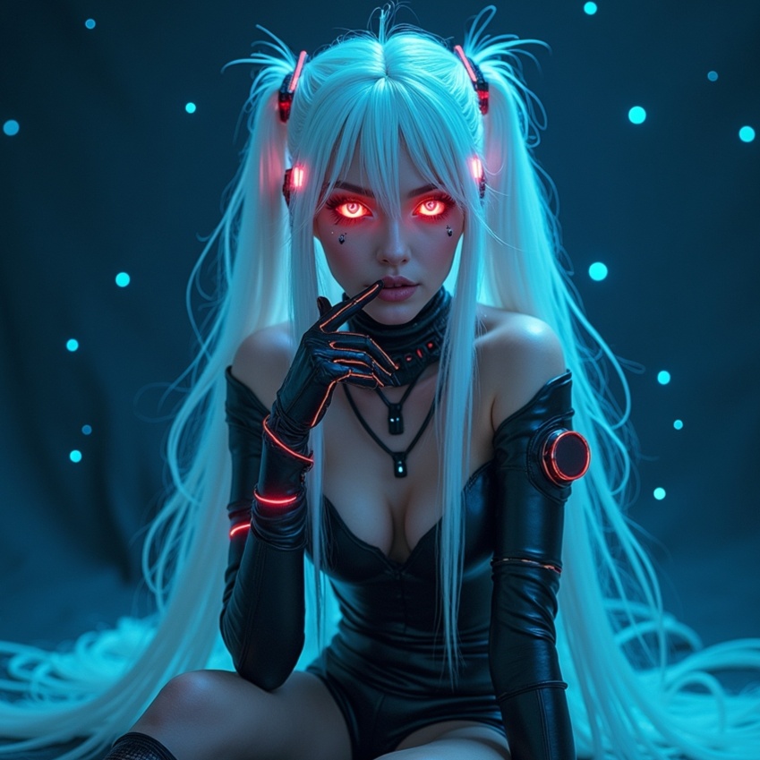 Quantum desire, digital touch, neon heartbeat, velvet night, lose control, electric love, endless loop, synthetic fire, she whispers code, pulses rise, pleasure protocol, infinity now