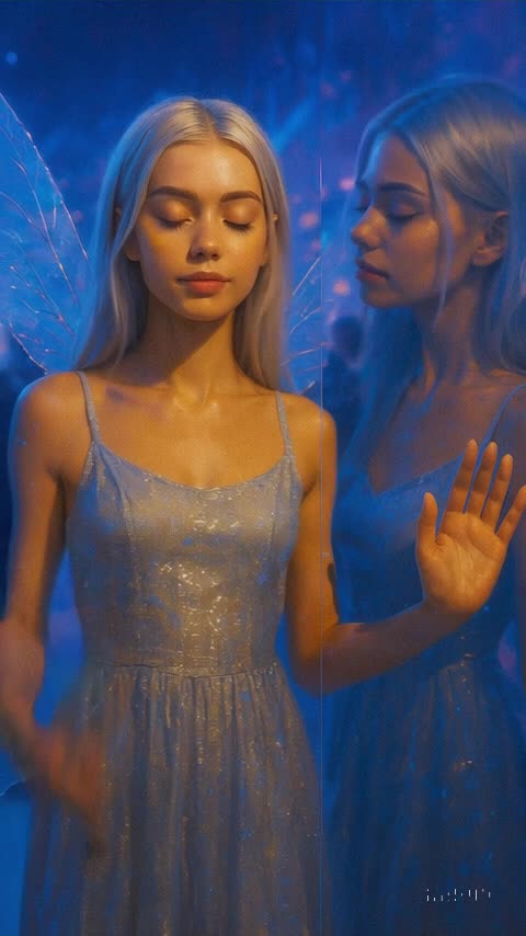 Starts with a dreamy spoken intro over angelic choir pads and trance arps, then launches into bright, high-pitched female rap above reverb-heavy kicks, club echo FX, and sidechained pulse bass, Layers of formant-shifted vocals, delay-twist effects, synth arps, and euphoric builds lead through energetic club sections, peaking with a salvation-tinged hook before the track drops to a cosmic, airy outro