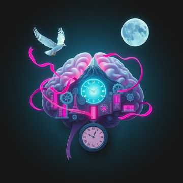 spoken-word rap, minimal trance, psy-techno pulse, acoustic guitar picking, bowed violin drones, female rap delivery, analog drum machine, sub bass ostinato, gated snare hits, tape saturation, dub delay throws, call and response hooks, breakdown drops, nocturnal reset, 96 BPM, hypnotic groove
