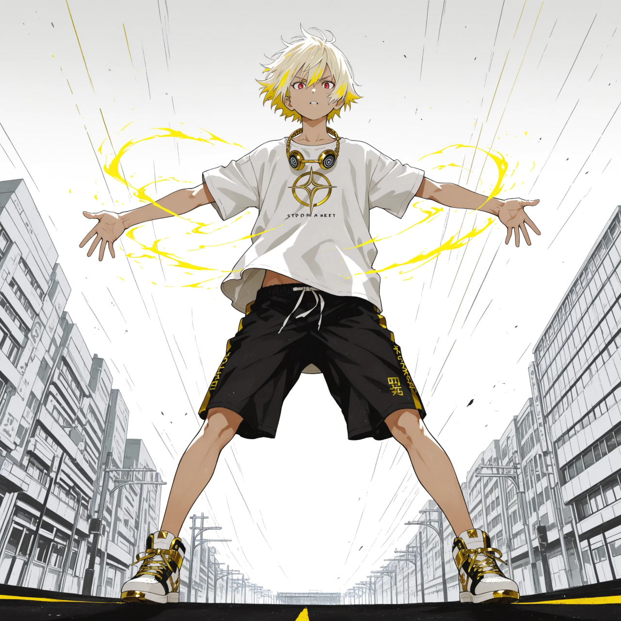 [Genre: J-Rock × Alternative Pop × Glitchcore × Cinematic Rock, Crossover], [Temporal Depth: Fragmented Urban Verse × Expansive Emotional Chorus × Chaotic Growth Pulse], [Core Instruments: Dry Electric Guitar (16th muted strum, clean burst in chorus), Saturated Bass (syncopated groove), Acoustic Drums (rim-heavy verses, full-kit chorus), Lo-fi Synth Pads (bitcrushed, tape-warped), Chorus Synth Stack (bright, wide, harmonic burst)], [Rhythm Section: Mid-tempo groove with stuttering verse rhythms × straight drive in chorus], [Texture: Lo-fi grit and tape hiss in verse, chorus bloom with stereo shimmer and clean highs, glitch transitions between], [Spatial Collapse: Compressed mono verse × Expanded stereo chorus × Verse/Chorus contrast emphasized], [Vocals: Japanese high-pitched male, whispery and filtered in verse, bright shout-layered in chorus, vocoder harmonies only in chorus], [FX: Reverse cymbals, vinyl crackle in verse, glitch dropouts, chorus delay throws, tape-stop moments before hook], ‑[Negative: muddy mix, ‑overcompression, ‑distorted low-end, ‑harsh high frequencies, ‑excessive reverb, ‑washed-out vocals, ‑flat stereo field, ‑clipping artifacts, ‑lo-fi vocal mud, ‑boxy mids, ‑narrow dynamic range, ‑smeared transients]