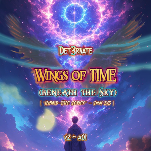 This guitar-driven cinematic, doomgazed yet uplifting ballad, with atmospheric post-metal & progressive rock infusion in B minor at 64 BPM in 4/4, opens with a 20-bar instrumental of reverbed twin guitars and ambient textures before a 12-bar spoken intro sets the tone, Whispered baritone verses drift over tremolo-picked guitars, swelling into pre-choruses where strings and heartbeat percussion rise, The 18-bar choruses explode with soaring clean vocals & layered choirs, carrying vast echoes, A stripped 14-bar interlude introduces the second lyric block, followed by a 28-bar bridge that slowly evolves from spoken baritone into choral surges, The 28-bar final chorus delivers the maximal climax with massive crescendos & cinematic-choral adlibs, The 24-bar outro stretches into ethereal ambience, layered vocals and ghostly choirs fading into silence, leaving only the resonance of time and memory, det3rnate