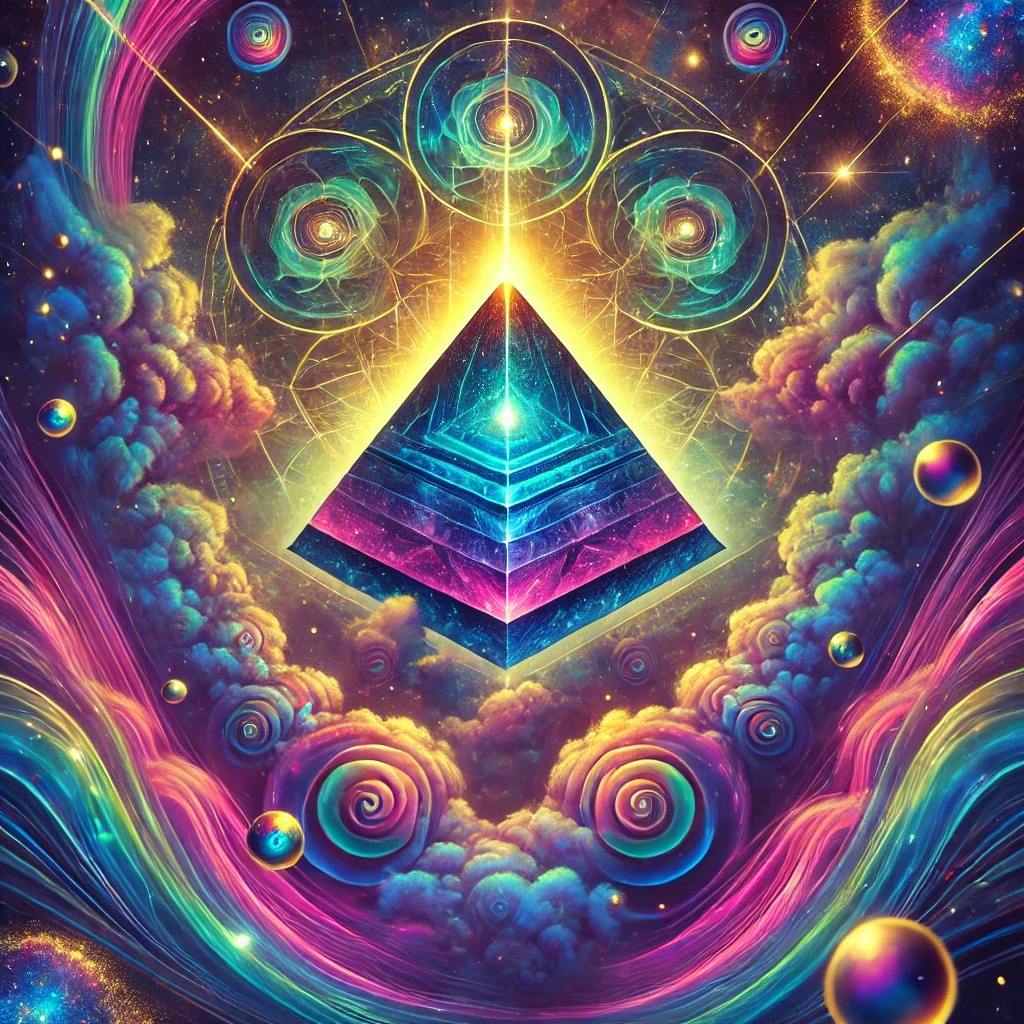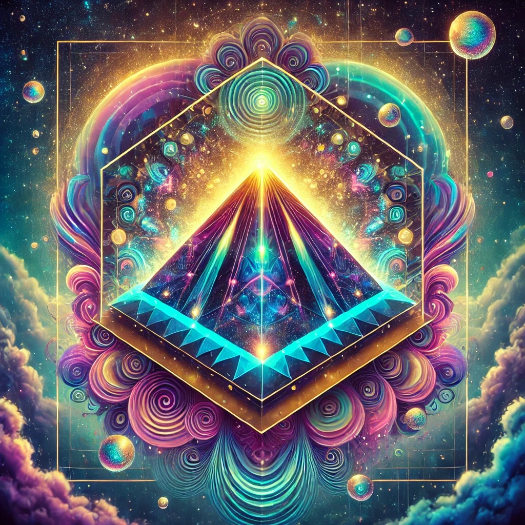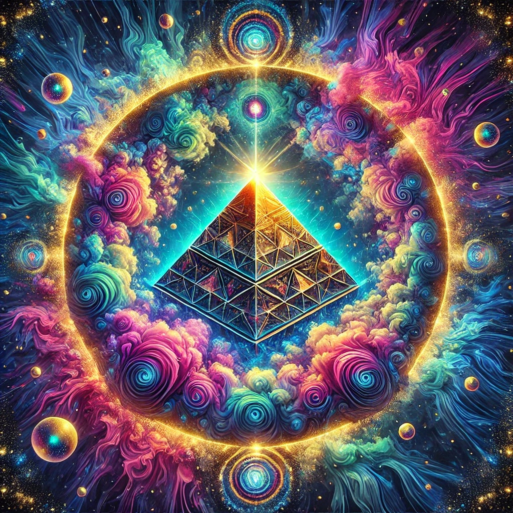 An atmospheric instrumental with synthesized pads evoking ancient sounds, arpeggiated sequences mimicking precision, a deep bassline echoing the pyramid's scale, and subtle percussion for mystery