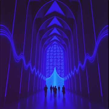 Opens with glitch harpsichord arpeggios spiraling in warped, precise stereo patterns, punctuated by micro-glitch polyrhythms, A fractured synth-organ rises in epic bursts beneath contrapuntal, recursive fugue layers, Baroque soprano and crystalline AI duet soar, culminating in a luminous digital oratorio: ecstatic, trembling, a sacred rave on the verge of eruption