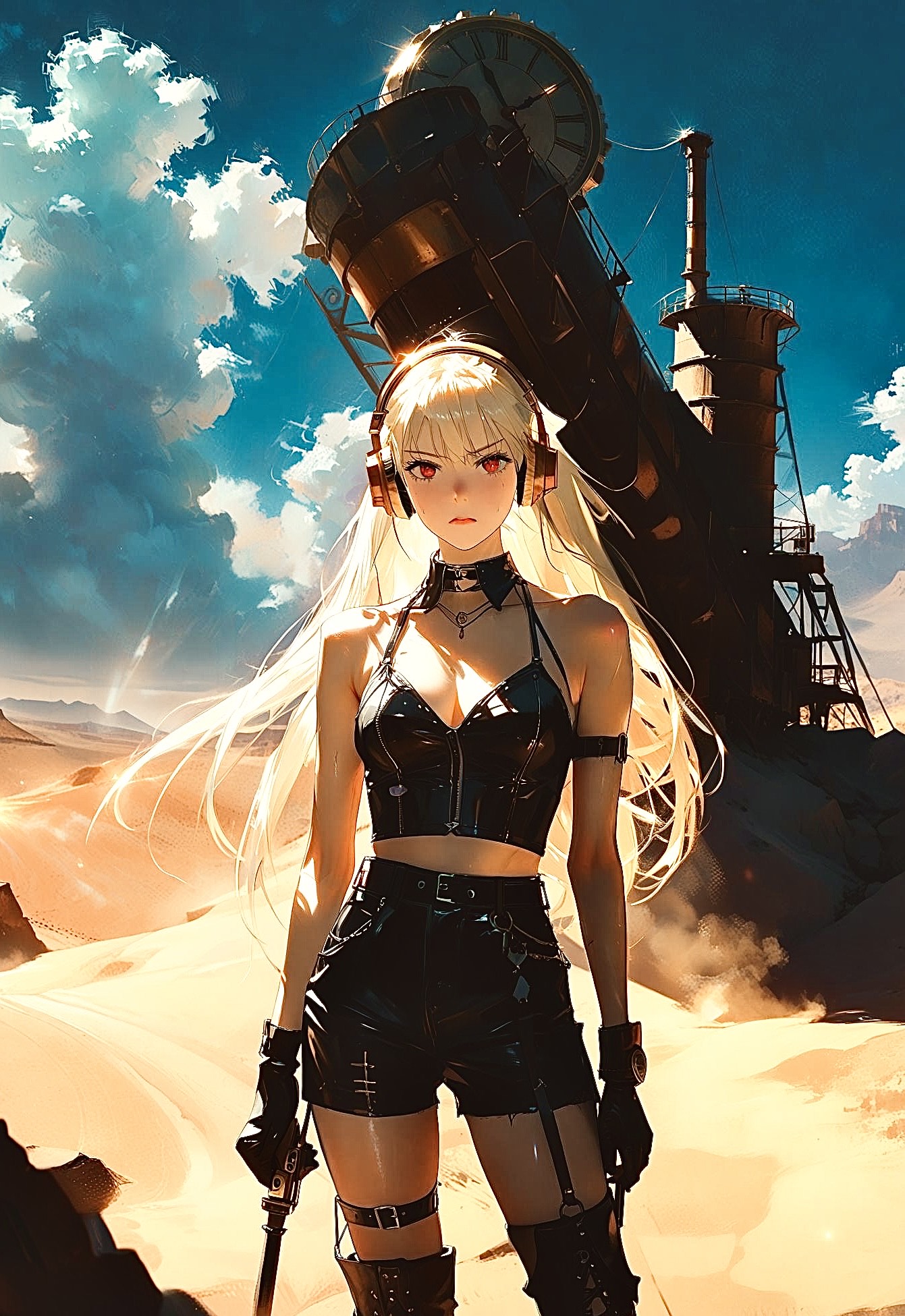 [Genre: Epic Lo-fi jazz beats × Mechanical Fusion × Glitchy desert machine soundscape, spatial audio depth, cinematic steampunk ambiance]