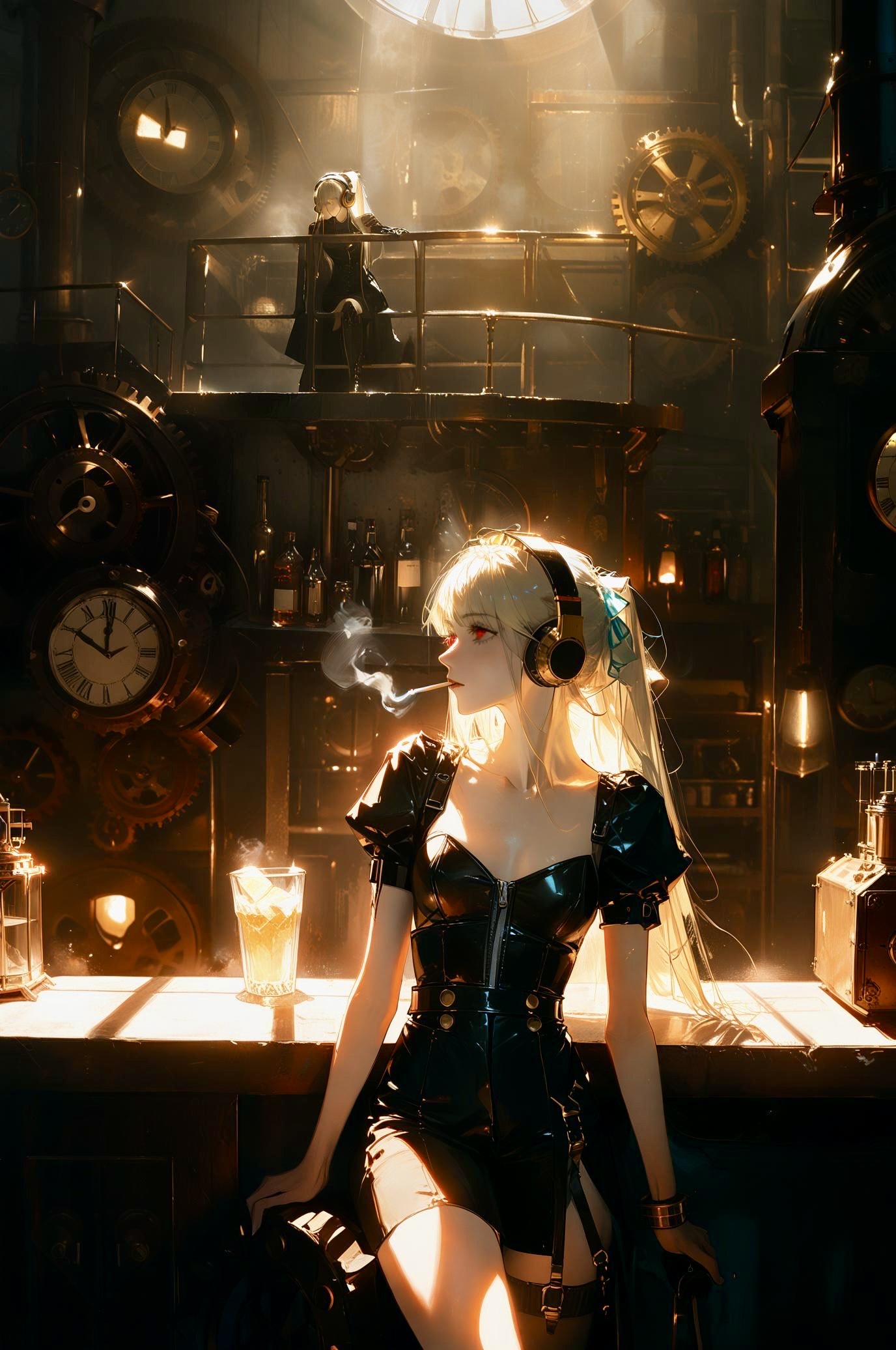 Steampunk fusion × Deep Smoky and Husky female vocals, lo-fi jazz rap flow, rusty gear ambiance, analog hiss, Steampunk glitch textures, clock ticking SFX, mechanical breathing, reverb-heavy whispers, typewriter rhythms, ambient noise of a rusted city, industrial brass & dusty vinyl textures, Gear SFX, Steam Blowing SFX