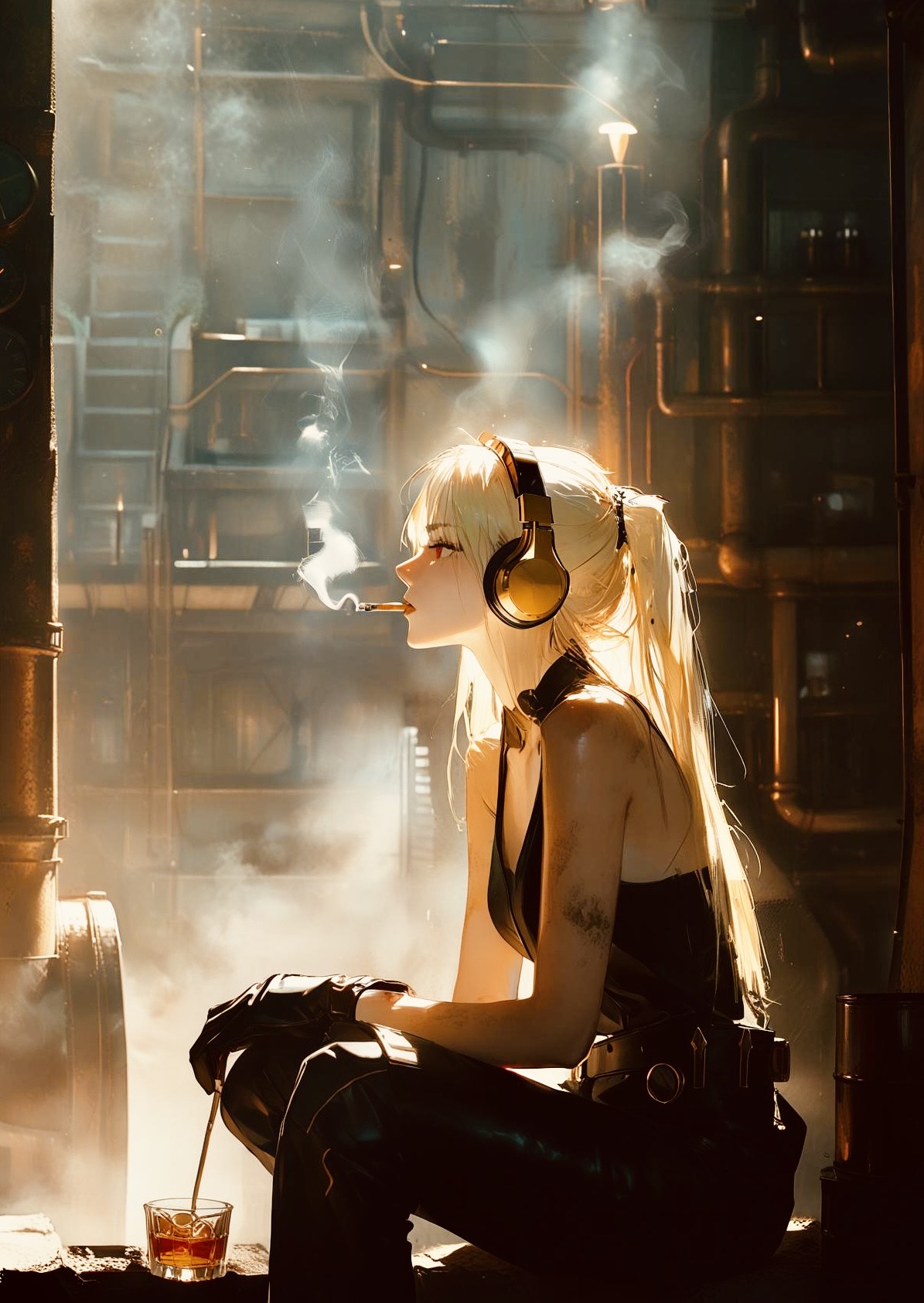 [Mood: Stylish tension between survival and intoxication; immersive, claustrophobic industrial textures; rhythmic but reflective; metallic melancholy]