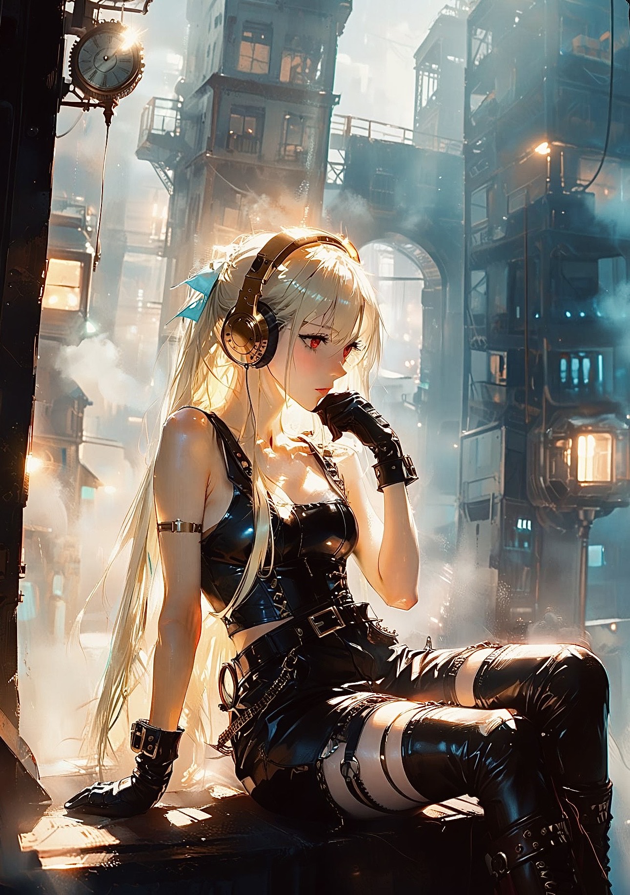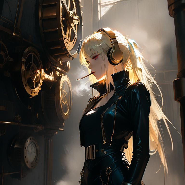 Steampunk Fusion x Smoky and Deep Husky Female Vocals, Lo-Fi Jazz Rap Flow, Rusty Gear Ambience, Analog Hiss, Steampunk Glitch Textures, Clock Tick, Mechanical Breathing, Reverb-Filled Whispering, Typewriter Rhythm, Rusty City Ambient Noise, Industrial Brass and Dusty Vinyl Textures, Gear SFX, Steam SFX