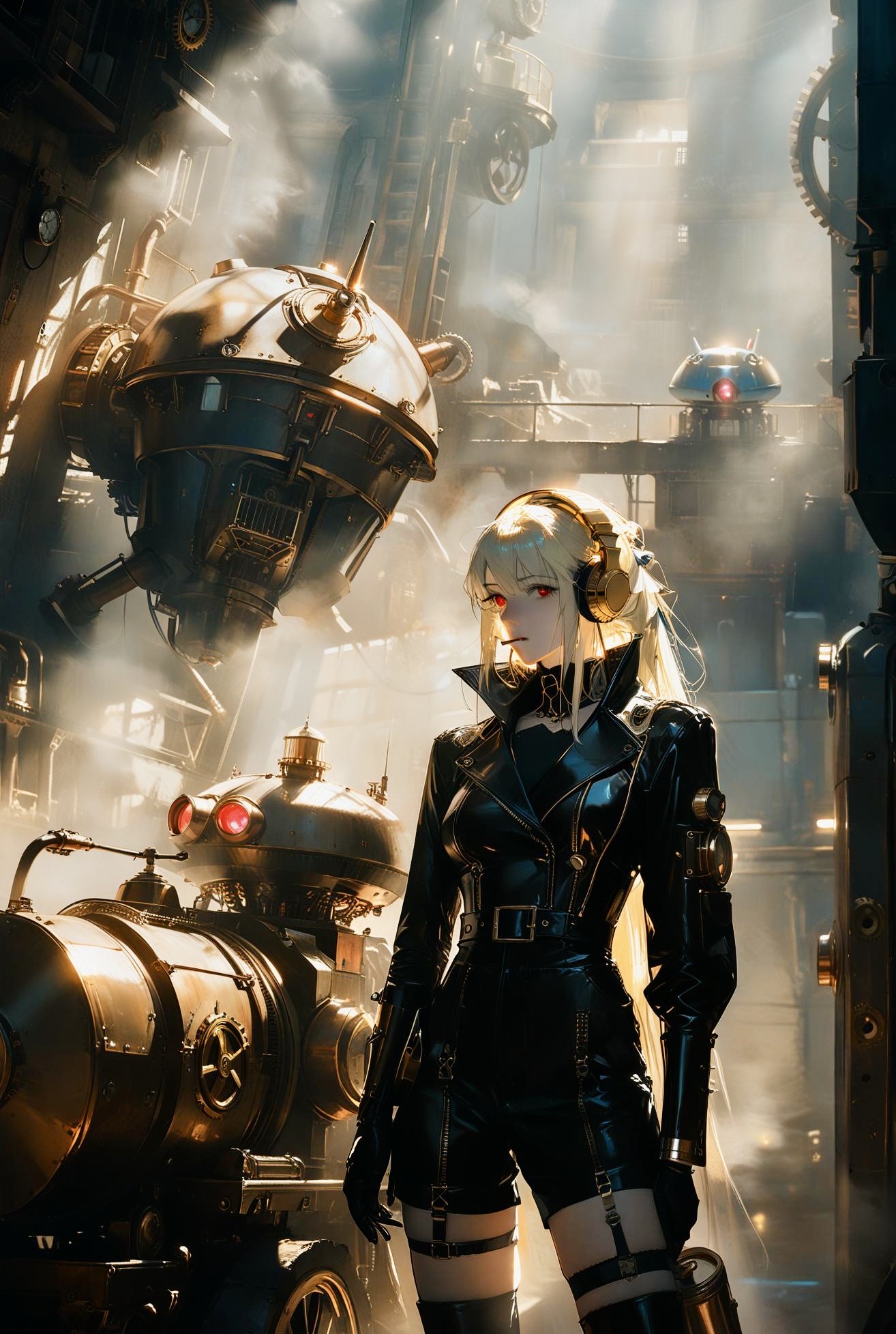 [Soundscape: Factory ambience × Rhythmic machinery × Layered percussive steam × Low-end industrial resonance × 3D stereo movement]