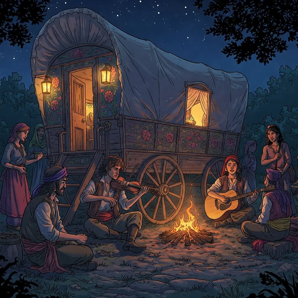 male vocals, female vocals, Gypsy jazz, fiddle, acoustic guitar solo