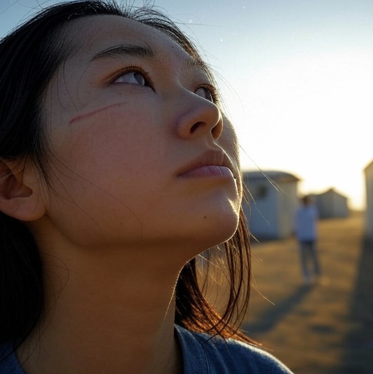 Sung in Mandarin, Acapella, classical guitar solo, calm, sorrow, ends with a poetic spoken monologue, nylon guitar