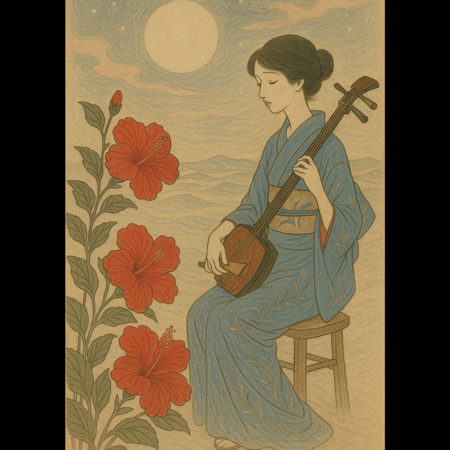 Japanese court music, slow, tunnel reverb, 3/16 tempo delay, tabla, 尺八, 琵琶, slow, mystical, unstable, fragile