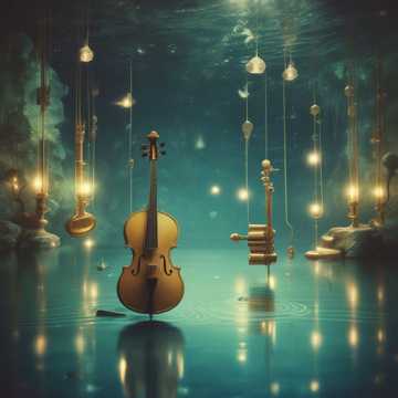 432hz tuning, violin and upright bass, nylon-string guitar, harp, unstable, in the water, reflected sunlight, blue, slow, calm