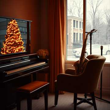 Warm Christmas ballad, slow tempo (70 BPM), saxsophone intro, soft string pads, subtle sleigh bells, acoustic guitar, emotional and peaceful mood, winter night atmosphere, heartfelt melody, cinematic but intimate, traditional Christmas feeling, cozy and nostalgic