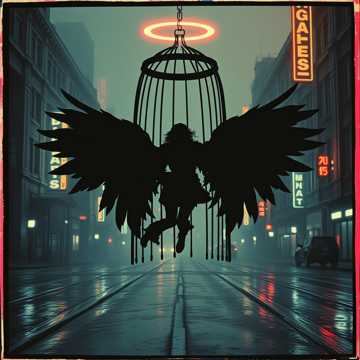 dark mid‑tempo rap‑rock, gritty guitars and live drums, male persona vocal, emotional story‑rap verses and big melodic chorus, theme of a fallen angel whose wings were cut off by the system that locked him up and spat him back out broken