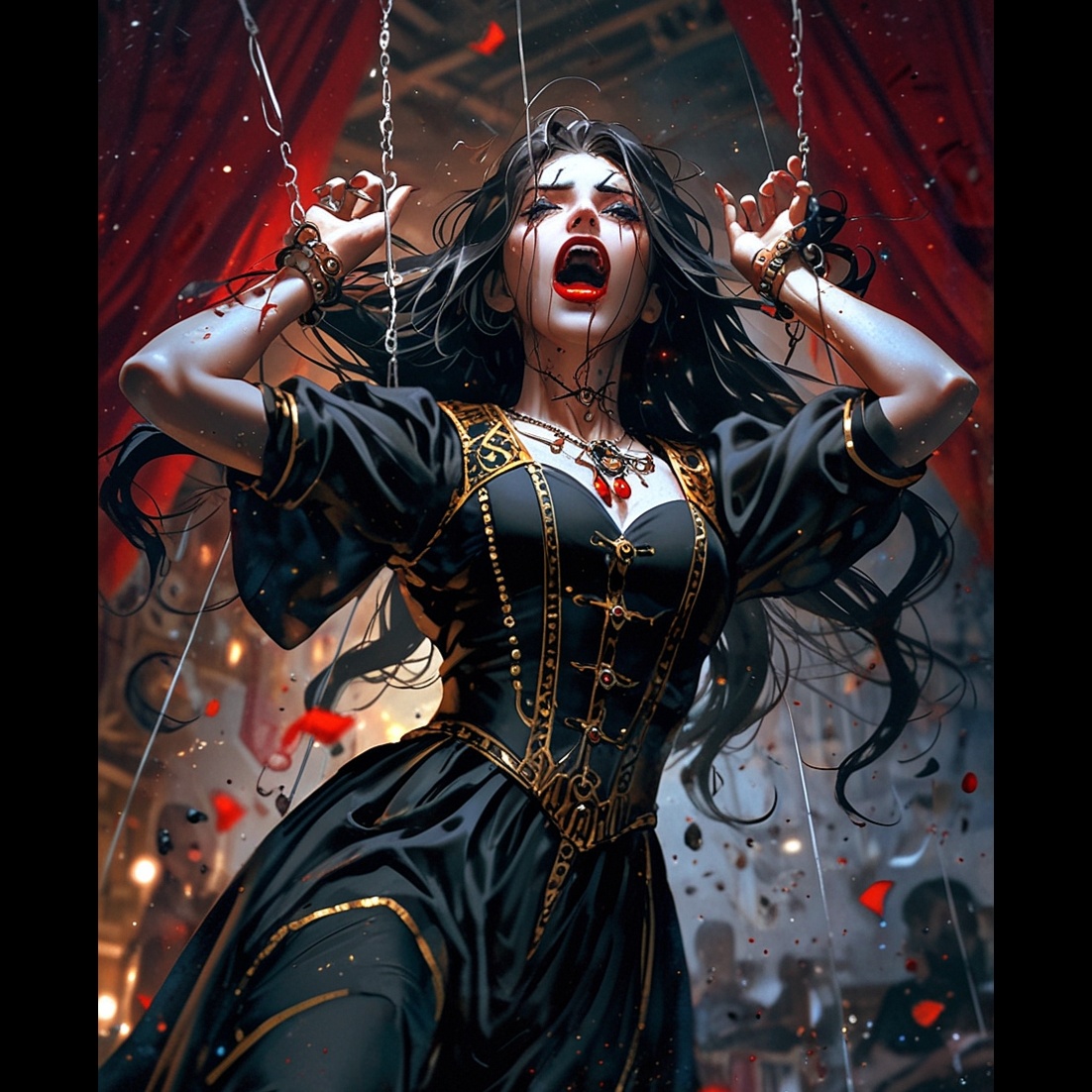 A tragic trance-rock fusion combining cinematic ambient pads, distorted electric guitars, and pulsating trance arpeggios, Deep, powerful female vocals shift from whispered storytelling in the verses to soaring, emotional cries in the chorus, expressing desperation and defiance, The track builds gradually through layered harmonies, rising filters, and heartbeat-like bass before exploding into high-impact rock-infused drops with intense vocal leads and synth-guitar interplay, Melancholic yet cathartic