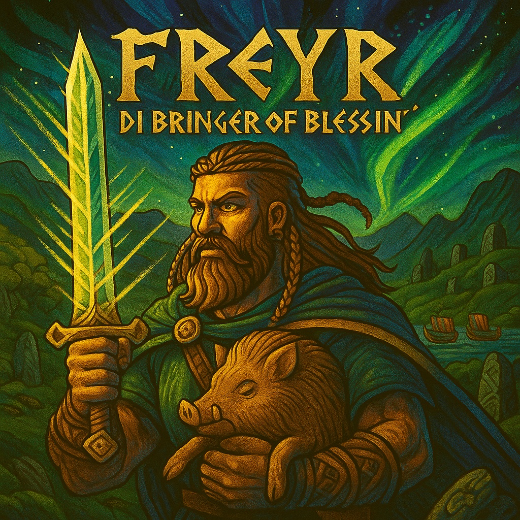 britpop, reggae, viking folk, acoustic guitar, electric guitar shimmer, melodic bassline, warm organ skanks, ambient pads, soft drums, echo reverb, harp accents, nordic flute, uplifting atmosphere, 90s britpop vibe, chill reggae rhythm, majestic, divine tone, peaceful energy, nature-inspired, ancient norse mood