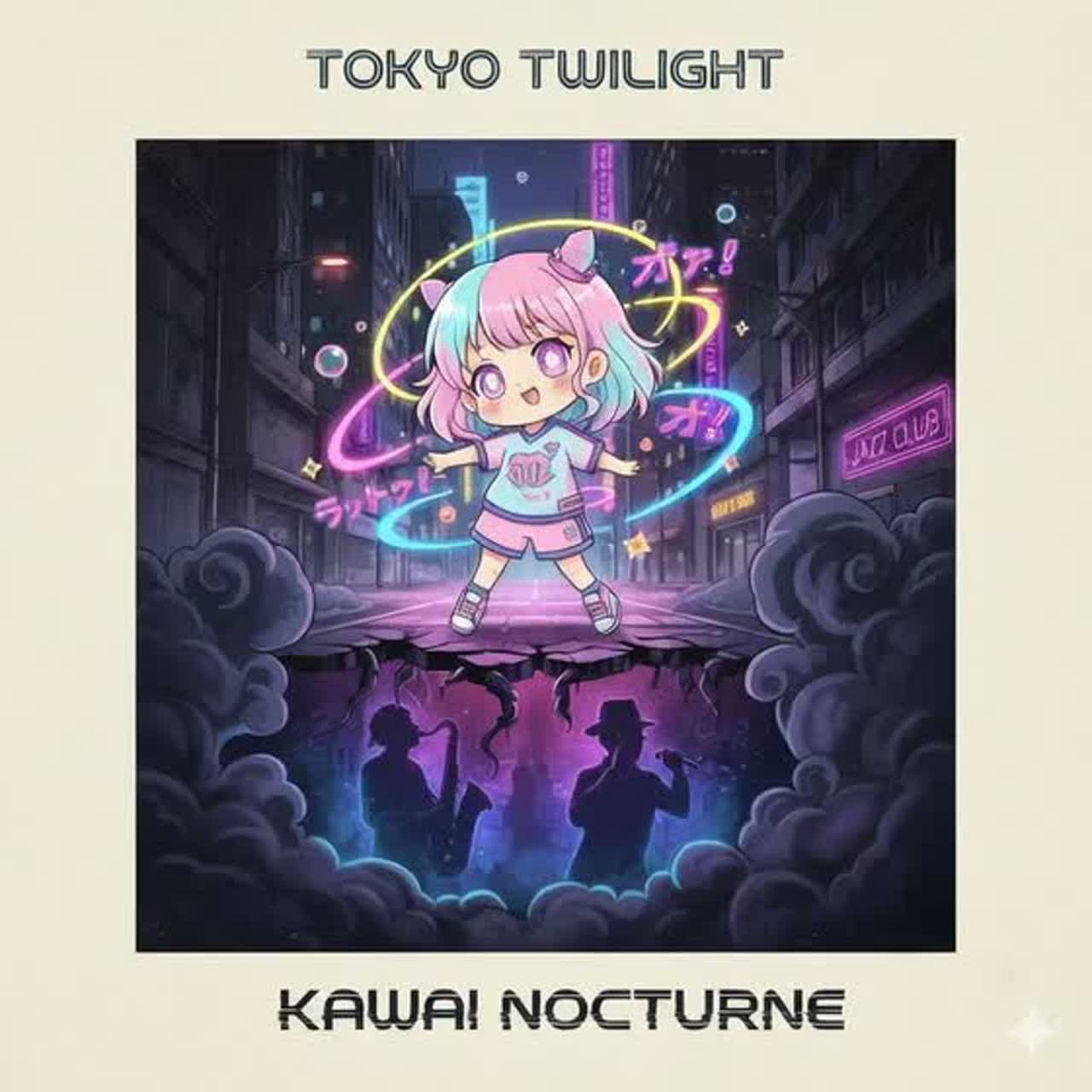 Style: Hybrid Kawaii Jersey Club x Dark Acid Jazz Noir, 132 BPM, Core Structure: > High-energy Jersey bounce with "bed squeak" and bubbly FX layered over a gritty, urban midnight atmosphere, Contrast between "Pastel Pop" and "Smokey Underground, "