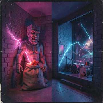 Industrial techno meets cyberpunk bass at a relentless 210 BPM, fusing rusted metal percussion with detuned synth pulses that cut through the darkness, Distorted 808 bass dominates the low end with earth-shaking sub frequencies, while glitch stutter drums and syncopated trap hats create rhythmic chaos, The grimey sub groove anchors everything with visceral weight, punctuated by metallic synth stabs that slice like industrial machinery, Parallel compression crushes the mix into aggressive cohesion, while tape saturation adds analog warmth to the digital brutality, Granular reverb creates haunting atmospheric decay, and stereo delay throws bounce between speakers with disorienting precision, The arrangement builds from a sparse, tension-filled intro into a dense, bass-obliterating drop that hits like a freight train, Strategic breakdowns reload the energy, with half-time switchups slowing the groove to crushing tempos, The overall aesthetic is bleak and melancholic, channeling tragic ene
