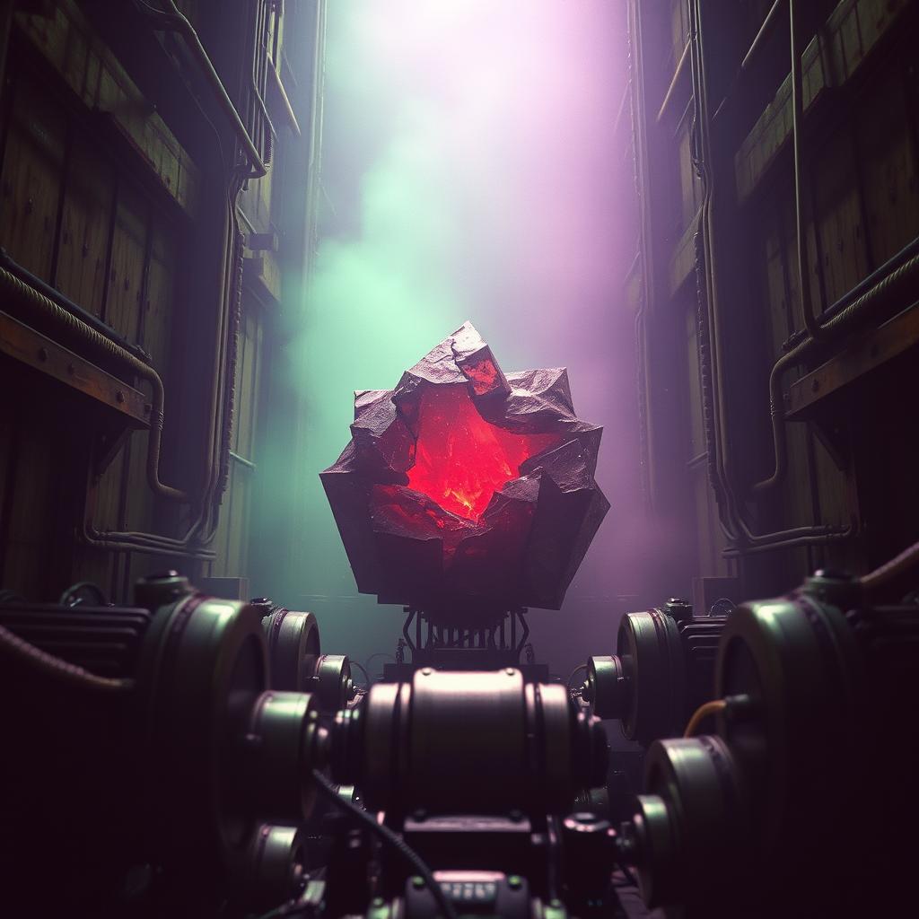 tribal, dark, hallucinogenic, alien, ritual, spacial, DMT, Mushrooms, Industrial techno meets cyberpunk bass at 210 BPM, Rusted metal percussion and detuned synth pulses, Distorted 808s and earth-shaking sub frequencies dominate, Glitch stutter drums and syncopated trap hats create rhythmic chaos, Grimey sub grooves provide visceral weight, punctuated by metallic, machinery-like synth stabs, Parallel compression ensures aggressive cohesion; tape saturation adds analog warmth to digital brutality, Granular reverb creates haunting decay, while stereo delays provide disorienting precision, Structure: Sparse, tension-filled intro builds into a dense, bass-obliterating drop, Strategic breakdowns reload energy with halftime switchups for crushing tempo shifts, Aesthetic: Bleak, melancholic, and tragic, High-velocity industrial aggression with deep, atmospheric weight, Hits like a freight train, No fluff, pure digital brutality
