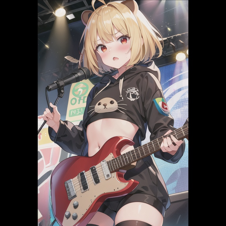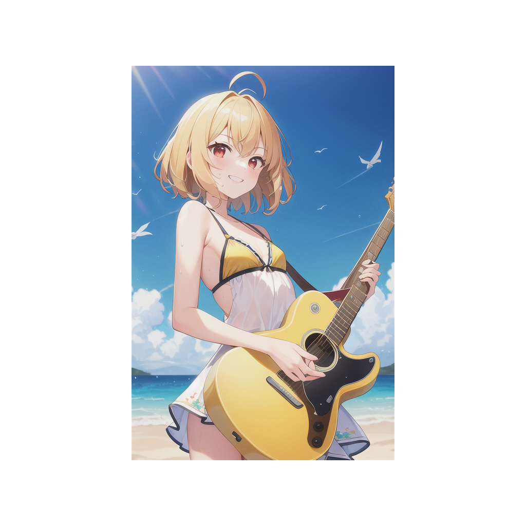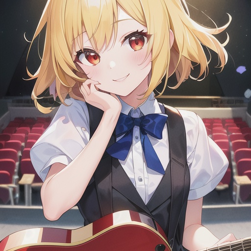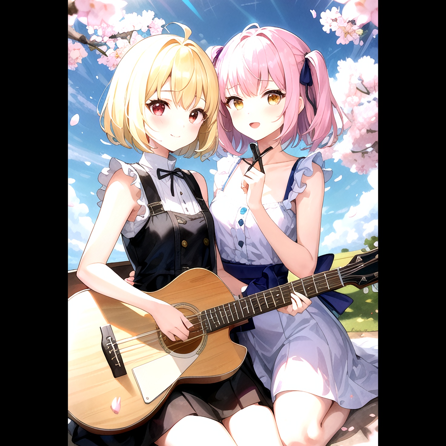 anime-inspired, guitar solo, upbeat with a touch of melancholy, female vocals