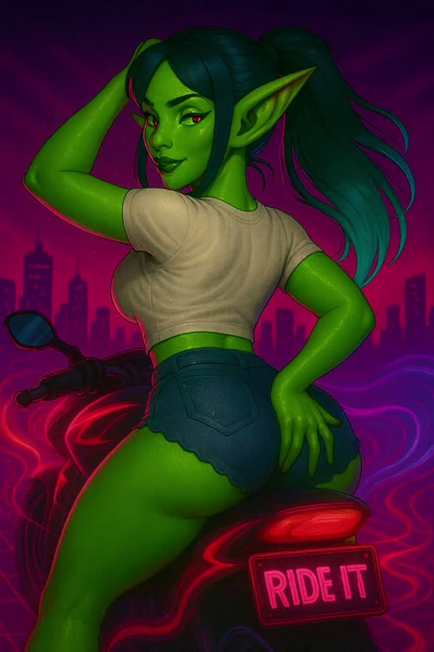 Dark Electro & Synthwave + Electroclash fusion, Pulsing analog synth bass, Gated reverb snares, Sidechain pads, Driving arpeggiators, Stuttered & glitched vocal chops, catchy, Whisper chant hooks, seductive, Rap verses (sultry neon imagery, electric metaphors), commanding, futuristic twist, layered voices, synth arp, mantra whispers with glitch FX, Hypnotic synthwave drops, gritty club, Drop vocal chop, Cinematic neon-night skyline atmosphere, Catchy & Cheeky, 95 BPM