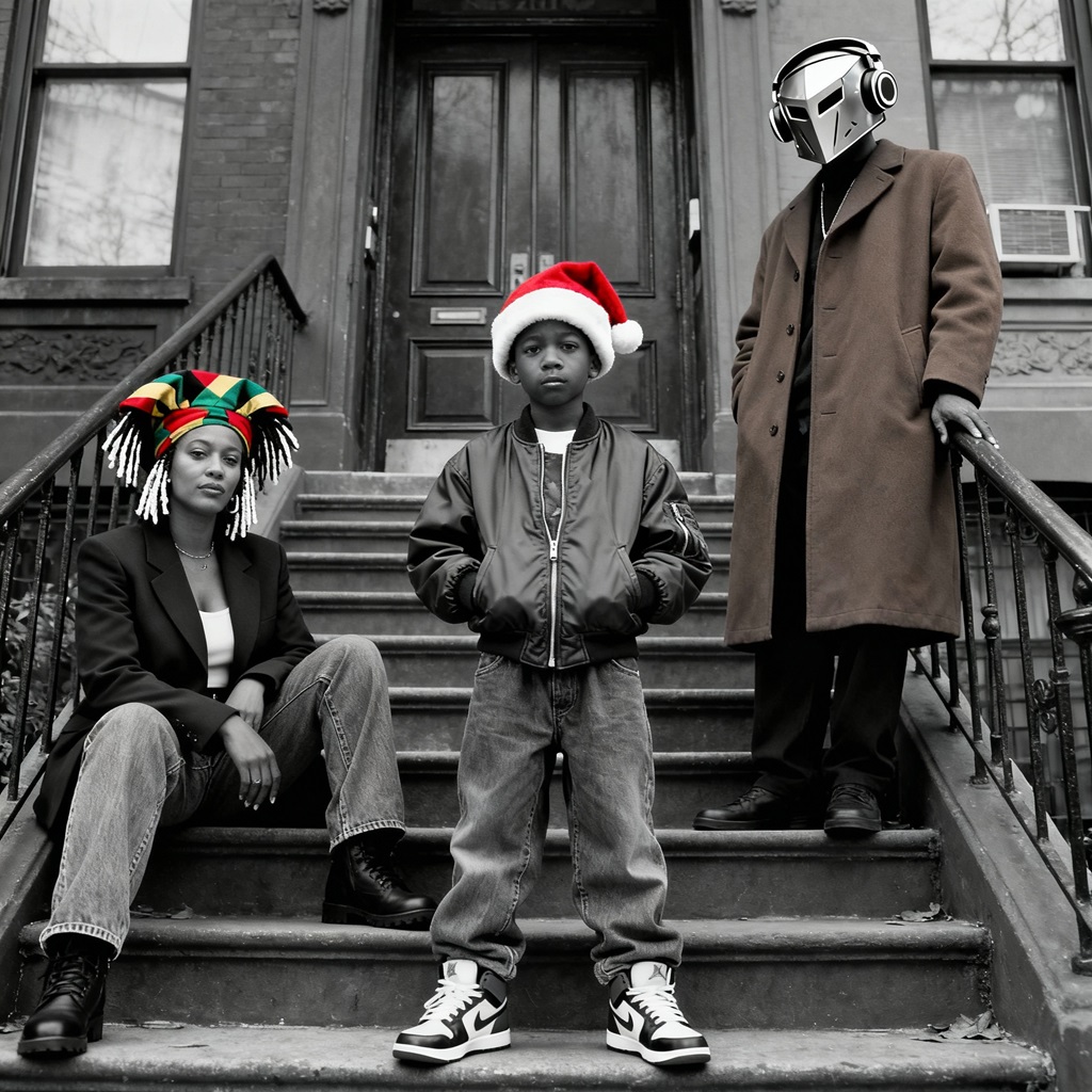 Instrumental: 80BPM Neo-soul boom bap with RnB chorus, Vocals: Spoken Female boom bap late 90s style, grave tone, rapsy, technical tongue-twist rap in verses, melodic RnB sung choruses, Theme: Naive Christmas in Brooklyn from a poor kid's view – few gifts, guilt over not being "good enough, " dreams of turntable, synth, sampler for musical dreams, Subtle late 90s nods (frosty Timbs, scratched cassettes, fuzzy MTV clips), Christmas refs: Santa, sleigh, Rudolph, bells, mistletoe, "Silent Night, " phantom fireplace, cheap tree angels
