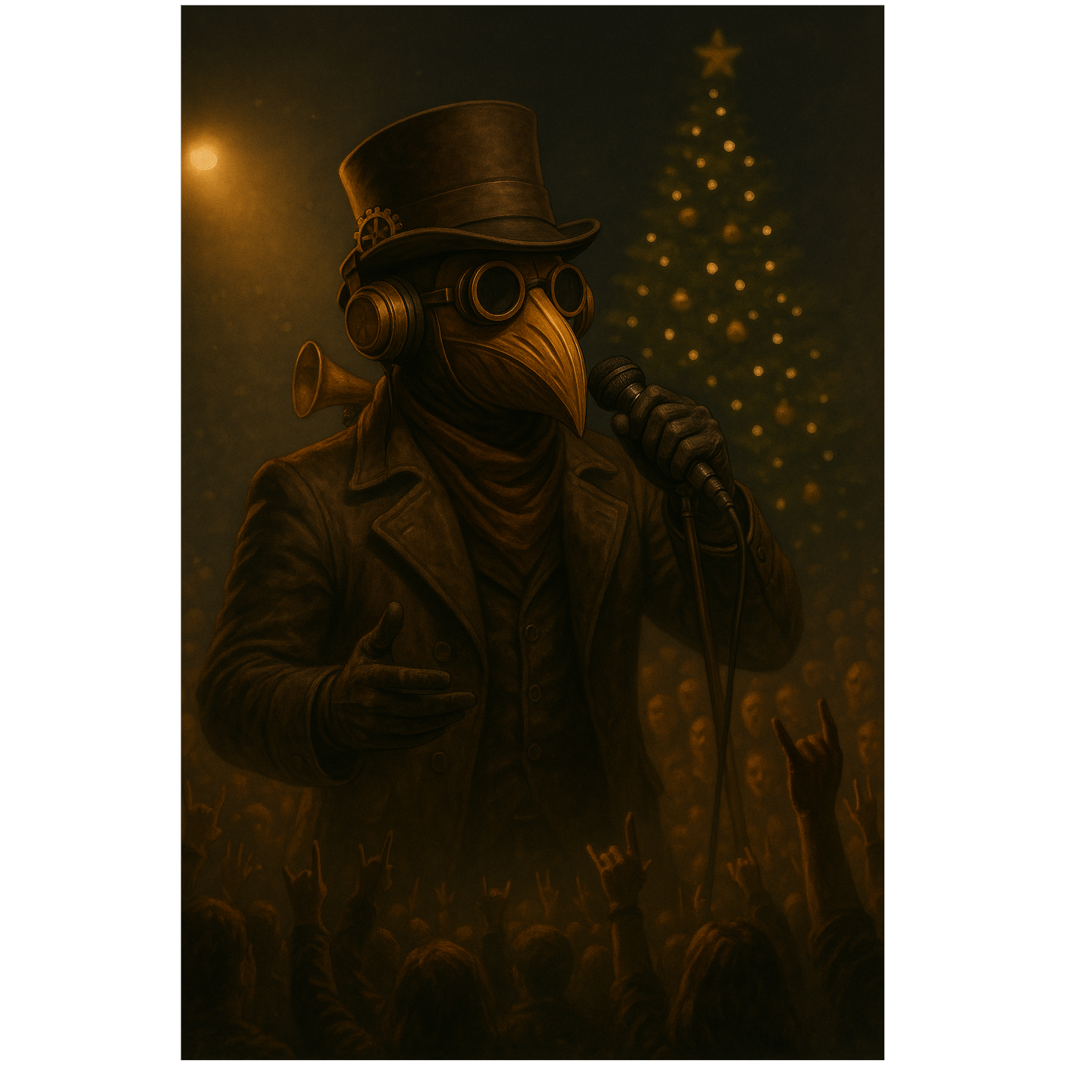 A powerful Christmas-themed rap track fused with dubstep energy, Heavy bass drops, wobbles, and distorted synths layered with jingle bells, orchestral Christmas choirs, and cinematic sleigh sounds, Fast, aggressive male rap vocals with rhythm switches, punchlines, and sarcastic Christmas references, Verses ride over grimy dubstep drops; the hook explodes with festive chaos — bass growls, bells, and vocal chops, Add Christmas chimes, reversed carol samples, and cinematic hits for contrast, Tempo around 140 BPM, Mood: wild, festive, rebellious — like Santa lost his mind at a rave, Tone: confident, humorous, darkly playful, full of swagger