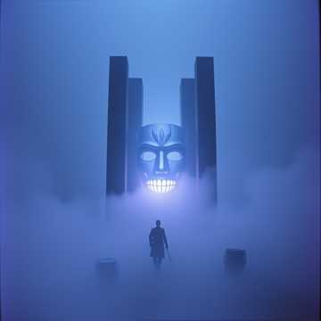 A motivational, cinematic soundscape: opening with brooding orchestral textures, rolling war drums, and an epic choir with ominous chanting and an eerie silent soothing female voice, The atmosphere is motivating and horrorcore-inspired, inaudible whispers panning in the background, blending mysterious dark pop motifs, 3D audio and creative panning envelop the listener in suspense