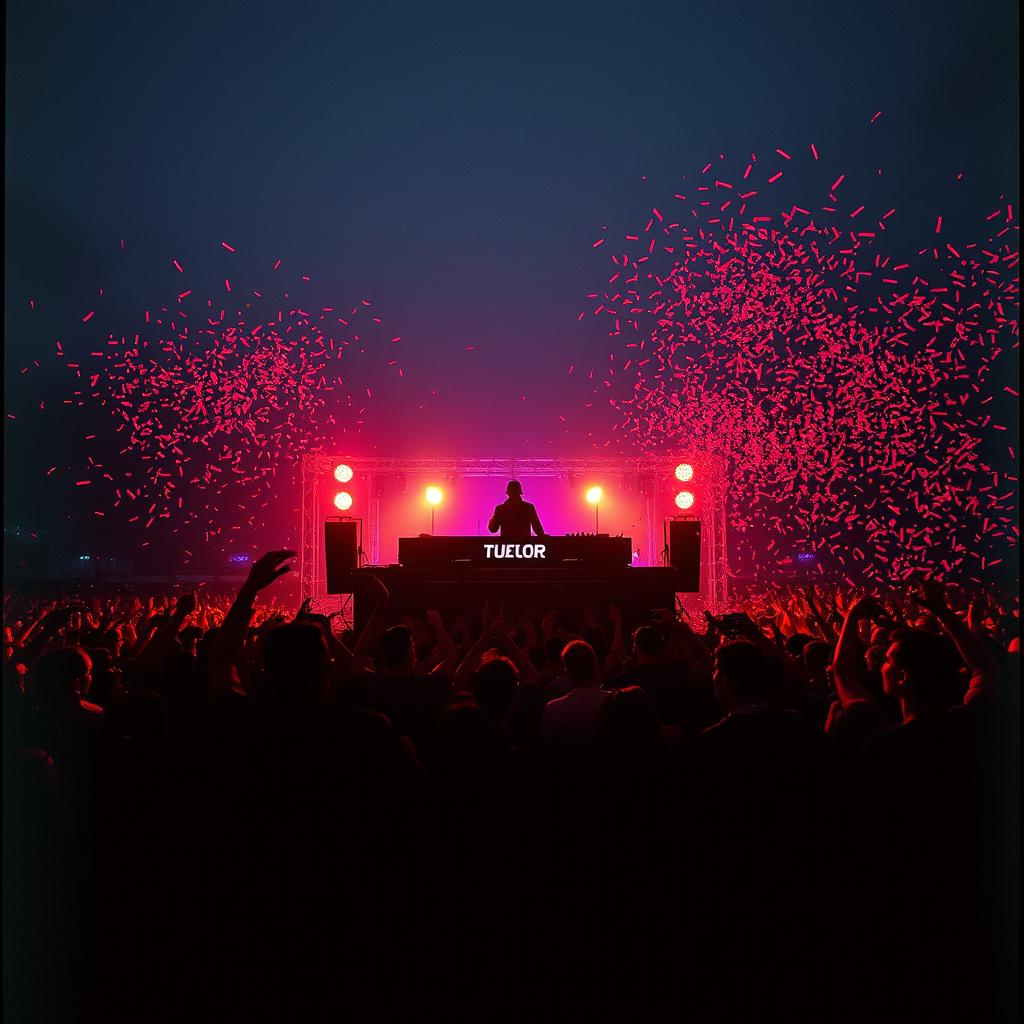A powerful and energetic track blending alternative rock with electronic beats and atmospheric synthwave textures, The song features gritty electric guitars, driving drums, punchy basslines, and lush, cinematic synthesizers, The overall mood is rebellious, futuristic, and emotionally intense — but with a more uplifting and dynamic energy rather than overly dark tones, The soundscape is immersive and dramatic, evoking a strong and determined female protagonist navigating a high-tech, evolving world full of challenges and transformation, Live Concert, Stadium Concert, Live Audience, Audience Interactions