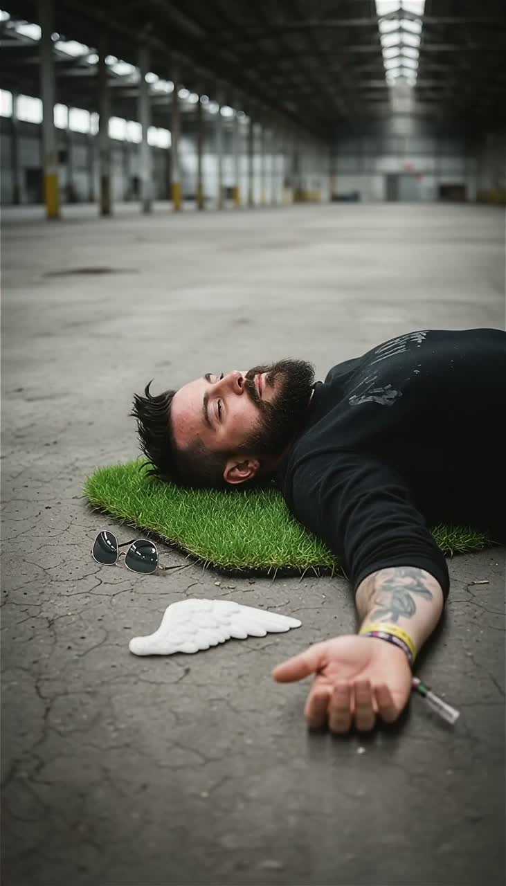 male vocals, traurig, acoustic, soul, rap, acoustic guitar ohne drums, deep, hiphop, Lofi, Dystopisch, faster Minimalist melancholic beat, subdued 808s, distant hi-hats, sparse synths, just relentless, flowing verses with stark, empty, eery texture, Buzzing bass, horrorcore, dark pop, layered vocals, double tracking, gang vocals