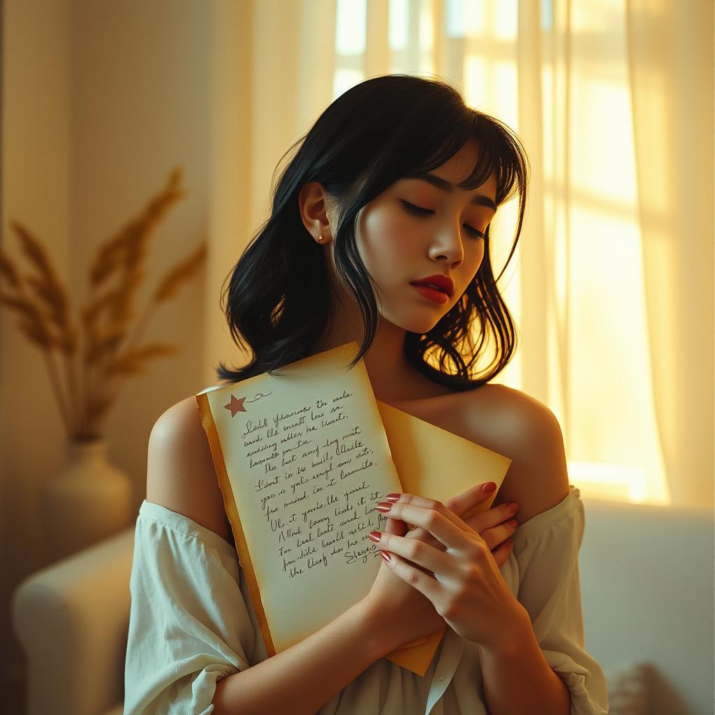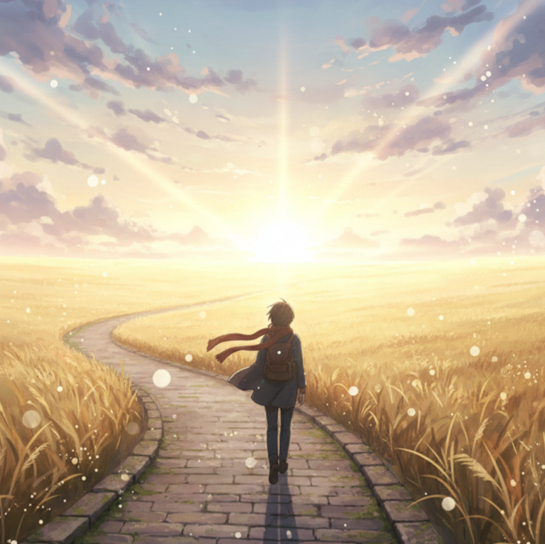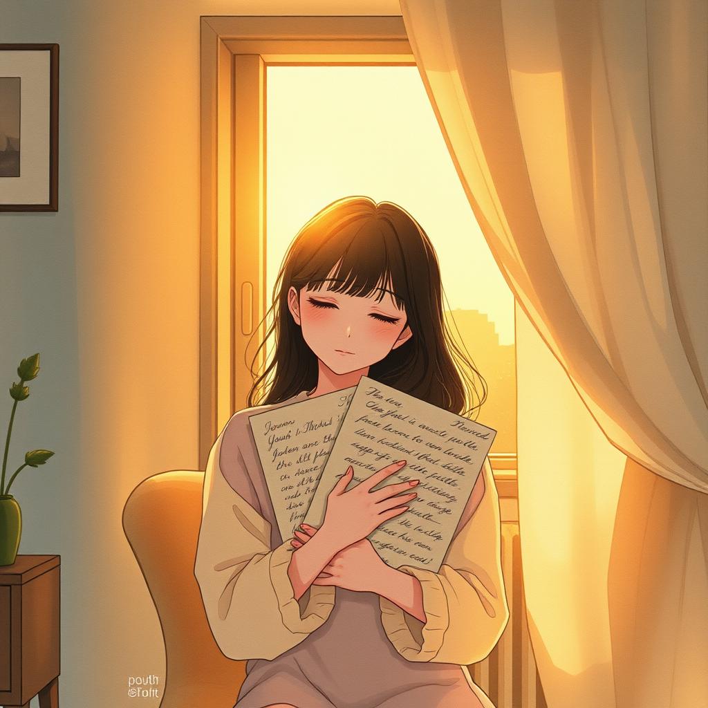 emotional lo-fi acoustic ballad, 72-78 bpm, no piano, no keyboard sounds, soft harmonica accents in intro and interlude, very subtle and emotional, nostalgic and warm texture, young female vocal, soft airy and crystal clear cute voice, breathy and delicate tone, innocent but emotional singing, slightly fragile vocal texture, intimate and expressive delivery, natural imperfections, not too perfect, no powerful diva voice, no heavy vibrato, bright emotional tone, warm feeling, gentle uplifting atmosphere, soft fingerpicked acoustic guitar intro, warm acoustic guitar as main instrument, lo-fi texture with vinyl noise and tape warmth, subtle ambient pads, minimal arrangement at first, lo-fi soft beat in verses, gradual build with emotional strings and light drums, subtle percussion entering in chorus, cinematic emotional build, wide and open chorus, contrast between intimate lo-fi verses and expansive chorus, nostalgic but hopeful atmosphere, expressive dynamic contrast