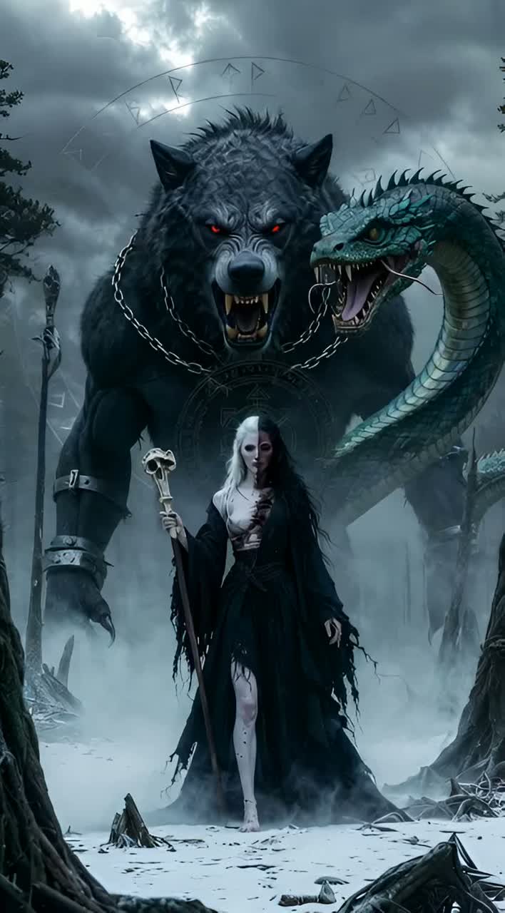 metal, Epic melodic death metal with galloping double-kick, down-tuned rhythm guitars, screaming lead guitar intro that explodes straight in, Male vocals shifting between harsh growls in verses and soaring clean power-metal chorus; thunderous bass locks with drums, Brief halftime breakdown under Hel’s section, then climactic unison guitars for the final chorus