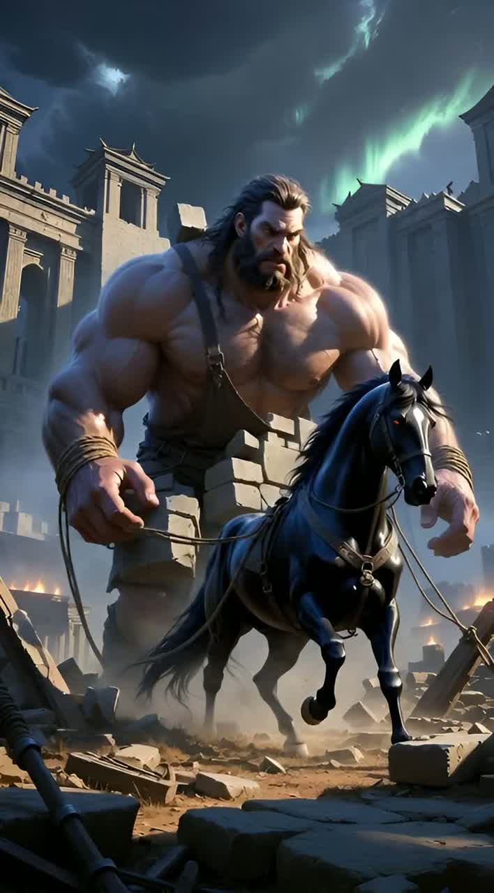 Epic folk-metal blend with male vocals; pounding war drums and floor toms under droning tagelharpa and low choirs, Verses stay storytelling and ominous with modal acoustic guitar and distant horn calls; chorus swells with distorted power chords, gang chants, and soaring lead vocal, Occasional throat-sung undertones and clashing steel accents to paint the mythic battlefield