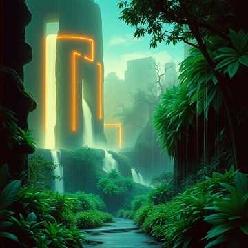 Ambient cinematic soundscape transitioning from urban density to natural jungle serenity, The first half features layered city textures (traffic hum, footsteps, crowd murmur, mechanical rhythms) without harsh elements like sirens, Gradual dissolve into lush rainforest audio (birds, animals, rainfall, waterfalls), No melody-driven vocals—female soft spoken or airy female mystical vocal presence blended into environment, Emphasis on spatial contrast, emotional release, and immersive sound design, Slow evolution, meditative pacing, deeply atmospheric