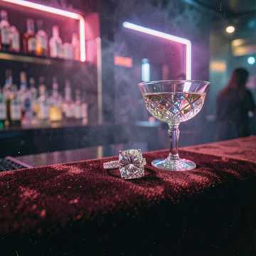 Cinematic James Bond–style big band swing with full orchestra and sultry lounge sensibility, Swung, mid-tempo groove with brushed and punchy jazz drums, walking upright bass, smoky grand piano comping and flourishes, and bold brass stabs balanced by lush string arrangements and stealthy woodwind lines, Harmonic tension with spy-movie chords, dramatic crescendos, and suave, suspenseful riffs, Lead vocal is intimate and breathy in a classic Hollywood starlet style, teasing and playful but poised, with close-mic warmth, coy giggles, and soft “oh…” interjections, Overall mood: glamorous espionage, martinis and high stakes, seductive danger wrapped in vintage champagne-lounge sophistication