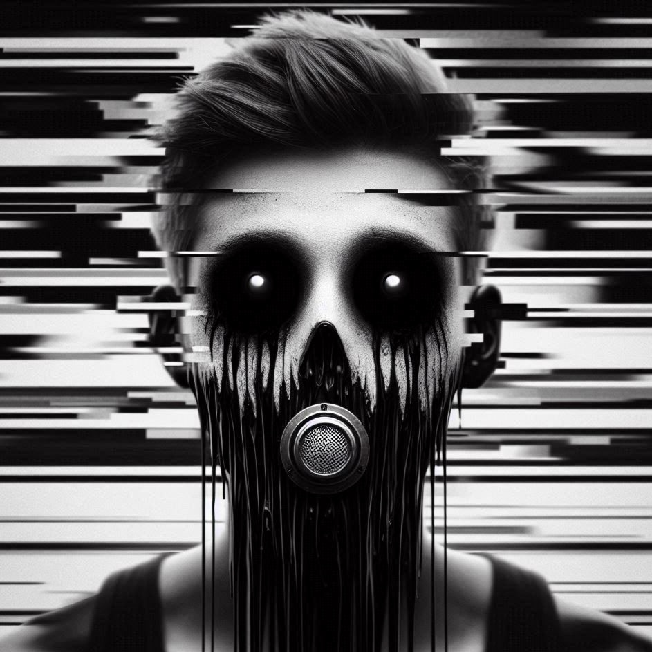 dark ambient, futuristic phonk, loud, robotic, nightcore glitchcore, cyberpunk, bass, echo, distortion, future, deep