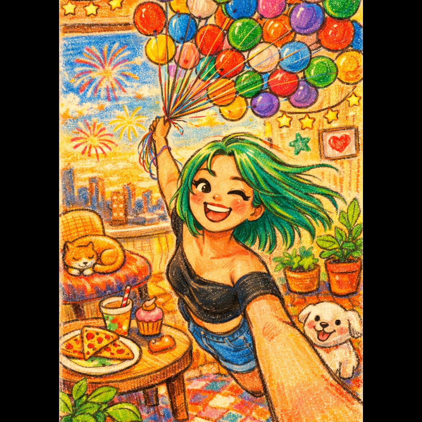 High-energy J-Pop and Future Core fusion characterized by a rapid tempo of 170 BPM in the key of G Major, The arrangement features bright, layered sawtooth synthesizers, syncopated electric guitar power chords, and a driving drum kit with a prominent snare on the backbeat, The production is polished with heavy sidechain compression, sparkling glockenspiel accents, and digital glitch effects, The female vocals are high-pitched, energetic, and processed with light pitch correction and doubling, The structure follows a classic J-Pop format with a soaring melodic chorus, a breakdown featuring chiptune-inspired arpeggios, and a high-intensity outro with rapid double-time percussion, Harmonic progressions utilize IV-V-iii-vi and I-V-vi-IV patterns common in upbeat anime-style soundtracks